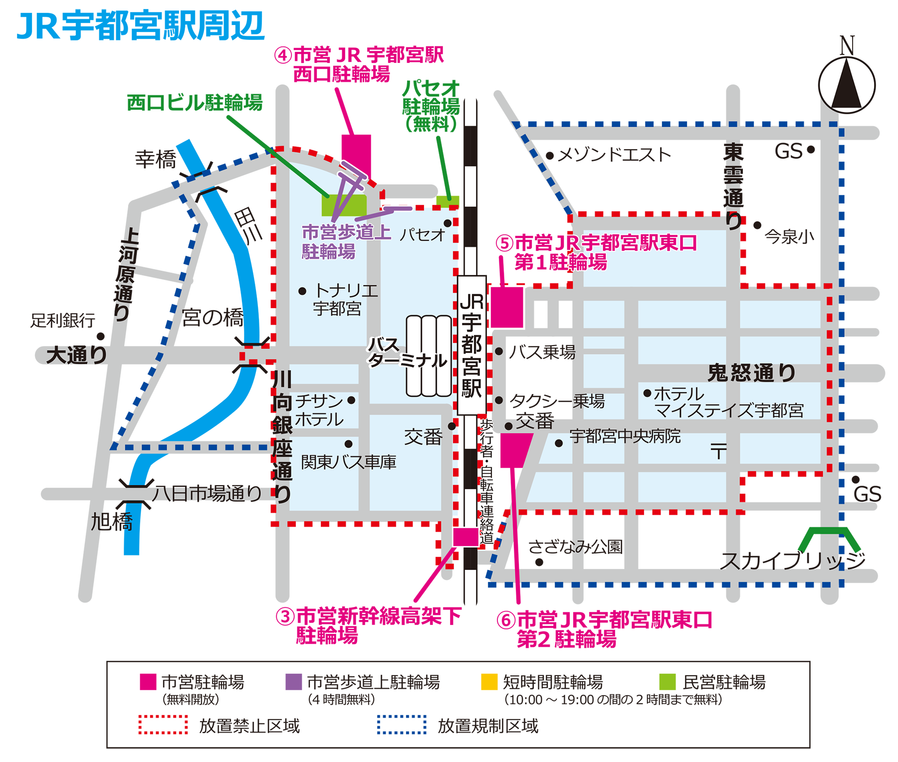 - 市営駐輪場の詳細につきましては、宇都宮市のホームページをご覧ください。