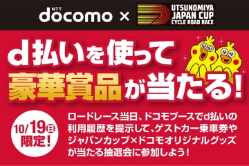【ドコモ×ジャパンカップスペシャル企画】ロードレース当日、宇都宮市内でd払いを利用して豪華賞品が当たる抽選会に参加しよう!