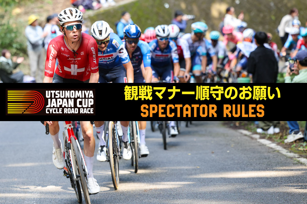 選手たちが安心して良いレースができるよう、またファンの皆さまが安心・安全・快適にレース観戦をお楽しみいただけるよう、宇都宮ジャパンカップでは皆さまにお守りいただきたいルールとマナーを設けています。ファンの皆さま1人1人のご理解とご協力をお願いいたします。
