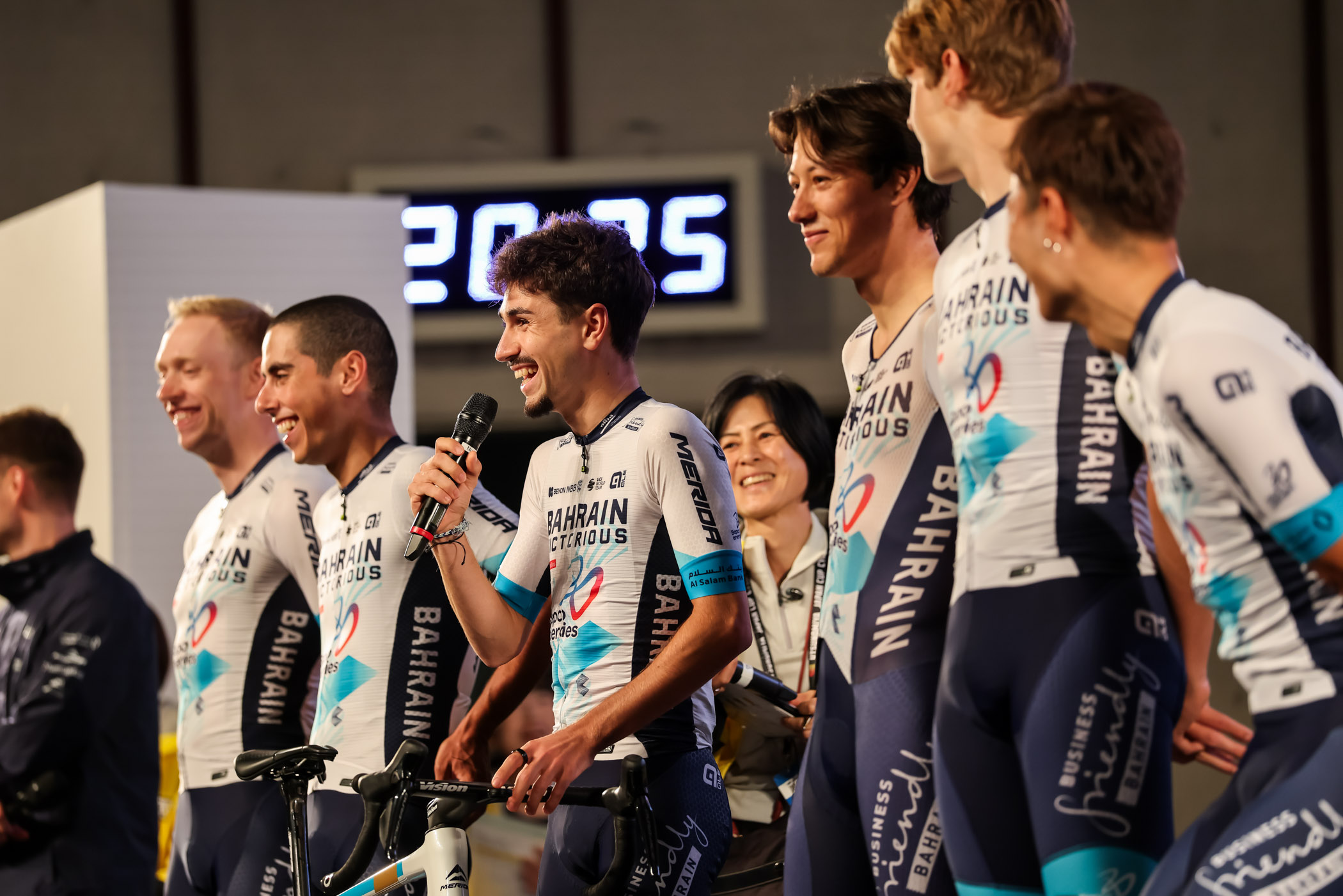 今大会最も厚い陣容を誇るのがバーレーン・ヴィクトリアスです。当初の発表から大幅なメンバー変更を経たものの、結果的にフランス期待のクライマーのレニー・マルティネス、ブエルタ・ア・エスパーニャでマイヨロホを着たトースタイン・トレーエン(ノルウェー)、秋のクラシックシーズン好調のアフォンソ・エウラリオ(スペイン)と期待がかかる戦力で宇都宮に乗り込みました。日曜の本戦はマルティネスとアフォンソがエースを務めることが事前発表されています。