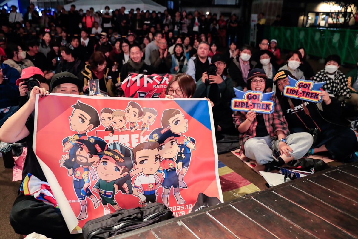 昨日、六本木でのブランドイベントに参加したリドル・トレックは、特別ペイントのチームバイクを携えて登場しました。ジョナタン・ミラン(イタリア)とマティアス・ヴァチェク(チェコ)、ジュリアン・ベルナール(フランス)ら一軍メンバーを揃えて好成績を狙います。