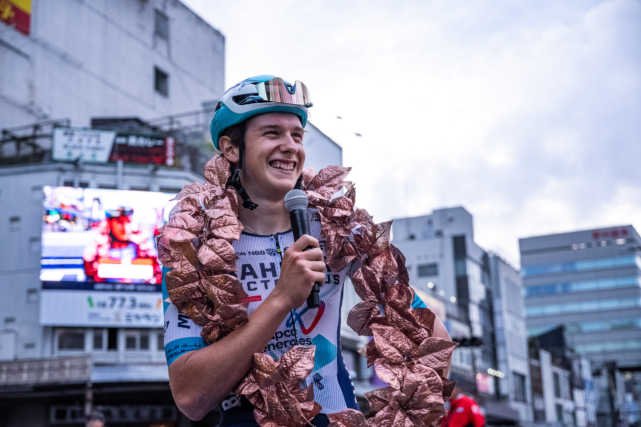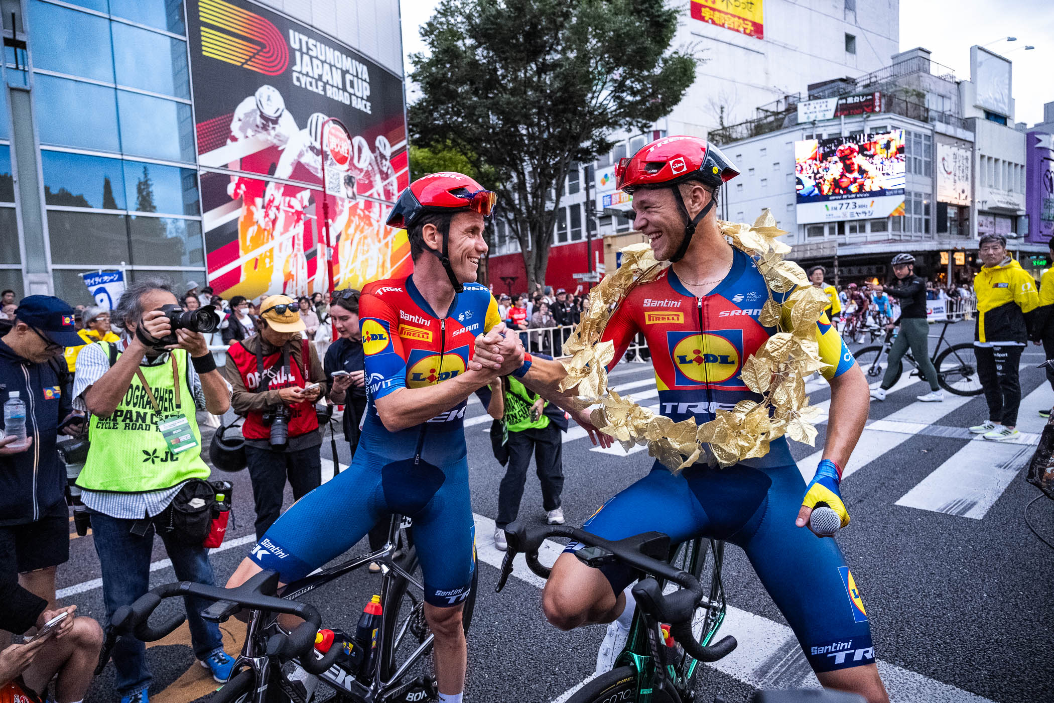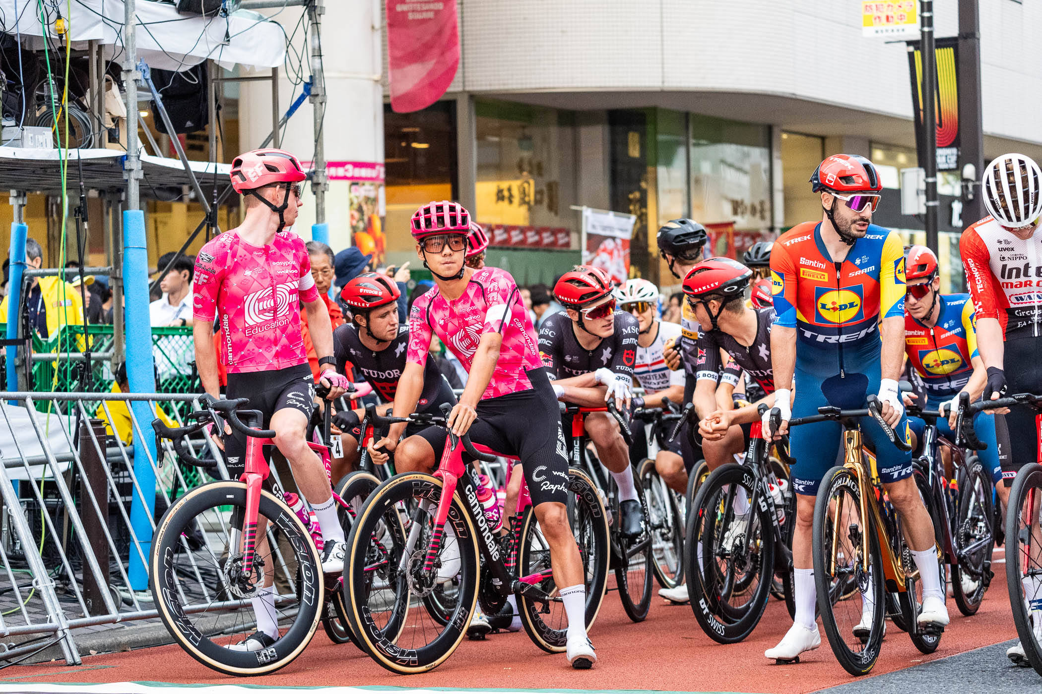 イスラエル・プレミアテックが積極的にアタックを仕掛けるものの、集団前方にメンバーを配置したリドル・トレックがその全てをチェックし、追いかけ、潰していく。メタリックカラーの特別バイクで揃えたトレックのメンバーが、ツール・ド・フランスのマイヨヴェール(ポイント賞)をイメージしたグリーンバイクに乗るミランを勝たせるために、そしてジャパンカップクリテリウムのチーム6連勝を達成するために、徹底的な集団コントロールを続けた。
