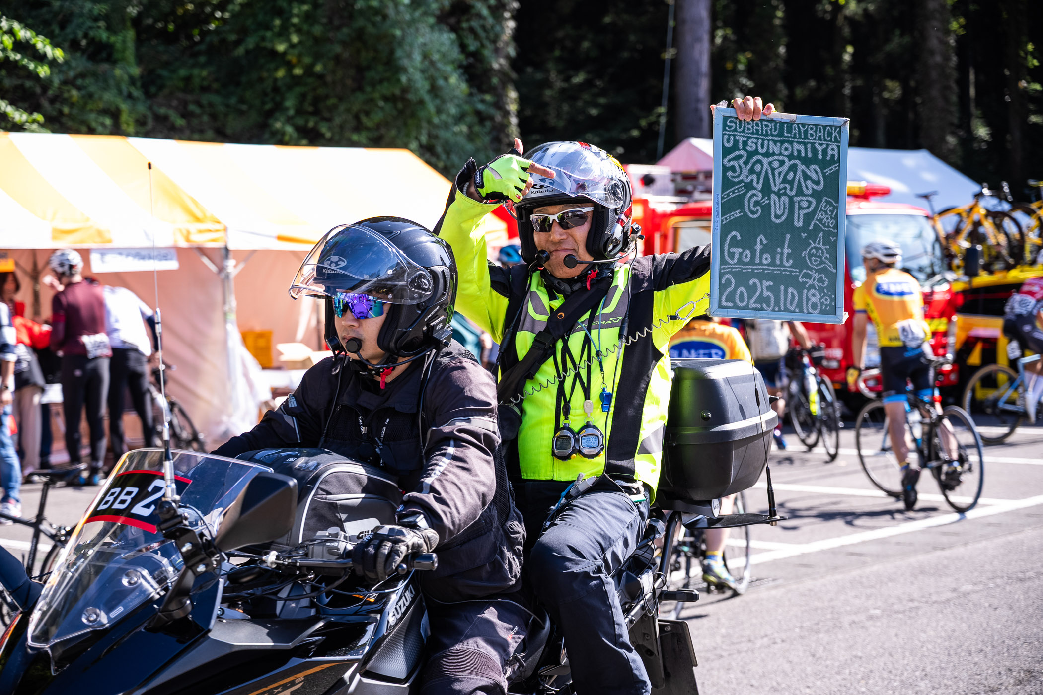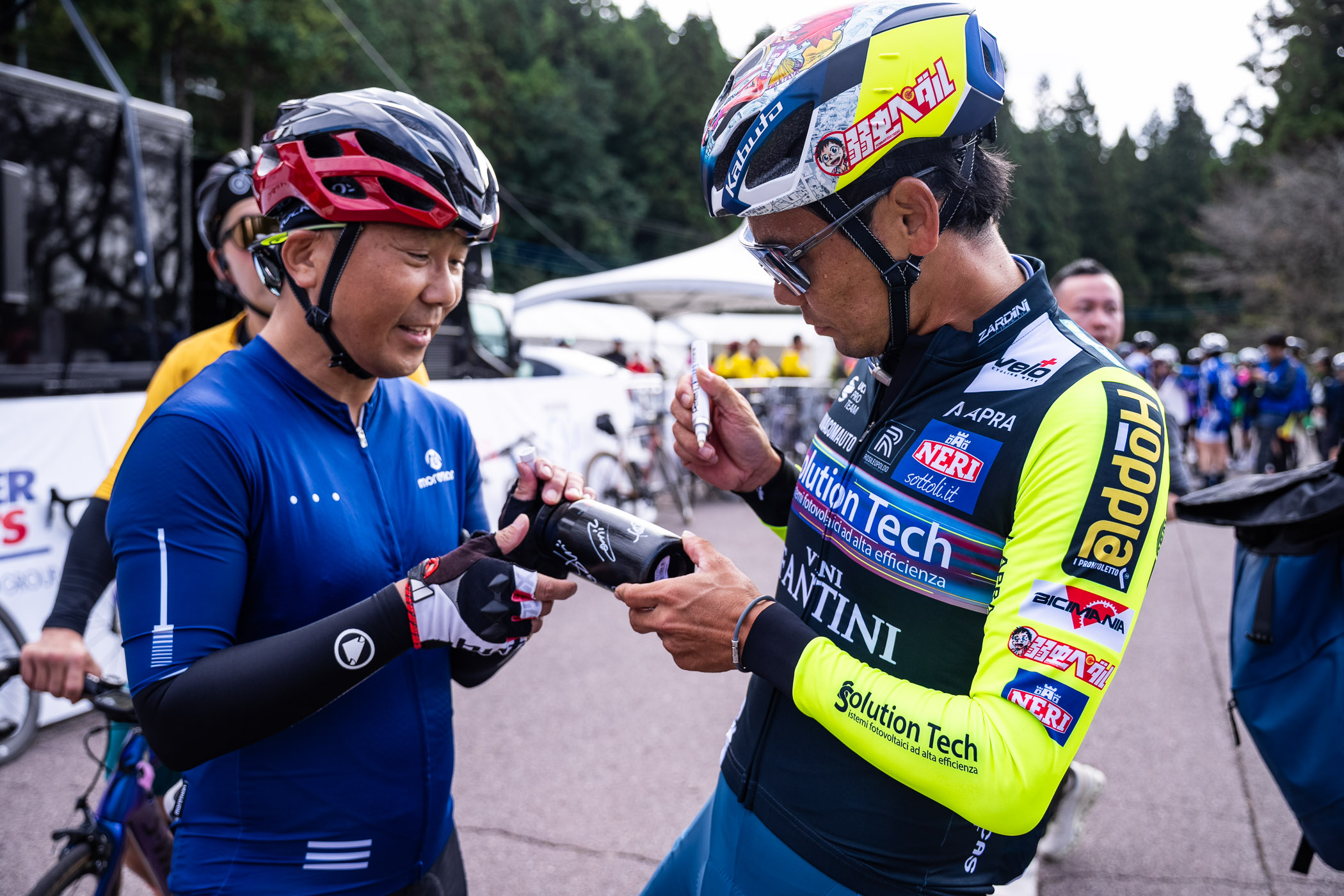 フリーランには毎年参加する常連さんも。村井孝司さんはその一人で、リドル・トレックのチームジャージ上下にヘルメットやシューズまでチーム仕様で揃えて、選手たちが乗るのと同じトレックMADONEに乗る。毎年恒例の装いで参加していて、選手ともすっかり顔なじみになり、今では「今年はジャパンカップに来るのか?」「じゃぁ、また会えるね」などとメッセージをやりとりする仲だとか。